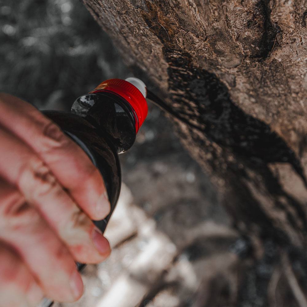 Благодарение на течната си консистенция, катранът прониква дълбоко в кората и освобождава интензивен аромат, който се запазва дълго време.